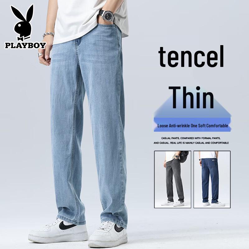 PLAYBOY Men's Tencel Loose Straight Leg Jeans