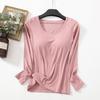 Versatile Autumn Modal Base Layer Shirt with Chest Pads, Slimming Long-Sleeve Round Neck, Wear Alone or as Inner Layer.