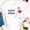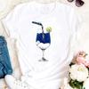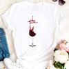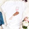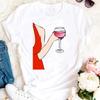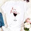 Womens Fashion Wine Glass Print Trendy Womens Base Layer Halfsleeved Womens Wear Shortsleeved Women Tshirt for Summer