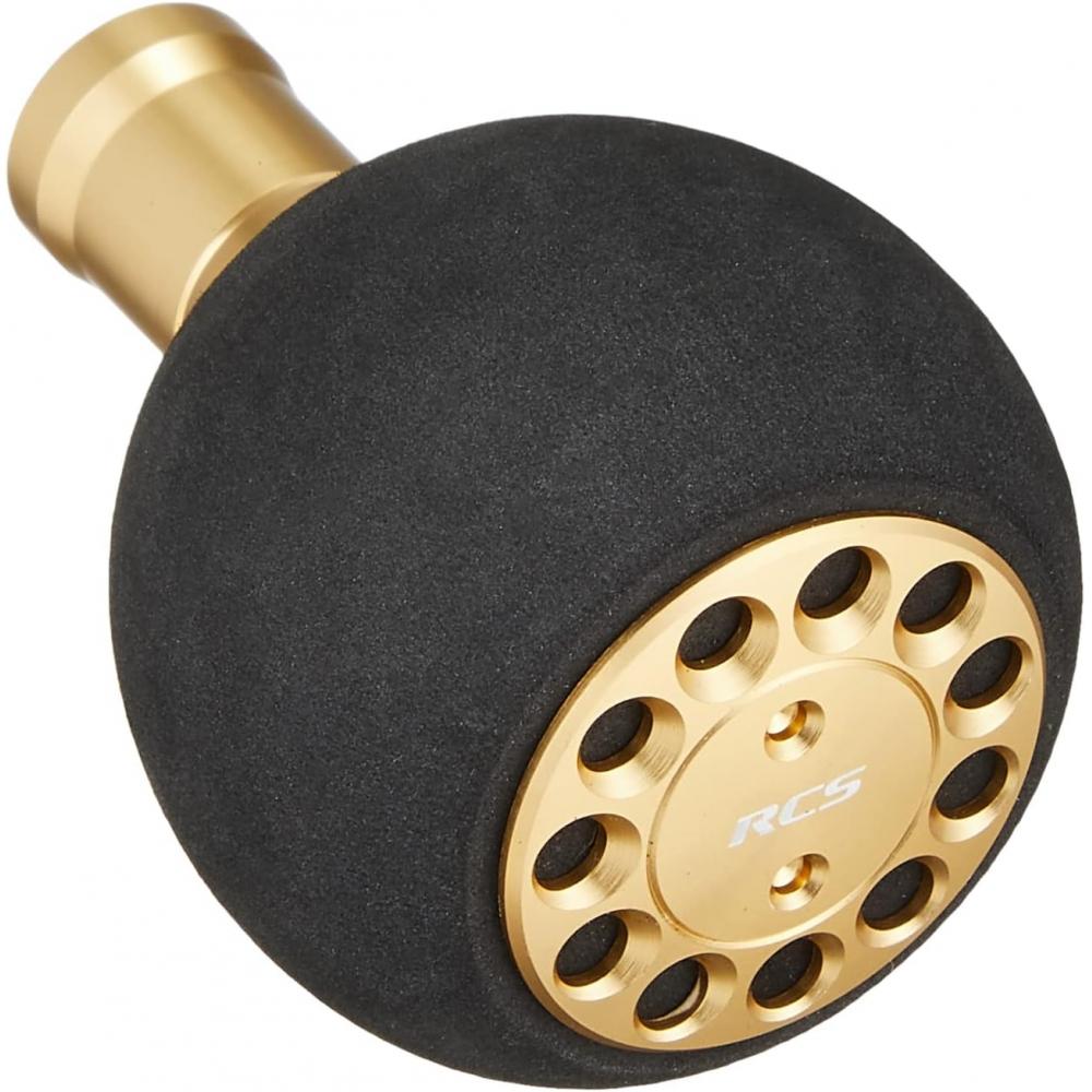 The Daiwa SLP WORKS RCS Power Light Knob Series Gold L size is designed for shore jigging and light jigging. This knob includes a high-strength aluminum insert for durability and features a round shape compatible with various reel types. Made with EVA material, it is lightweight and has functionality that can handle various fish species.