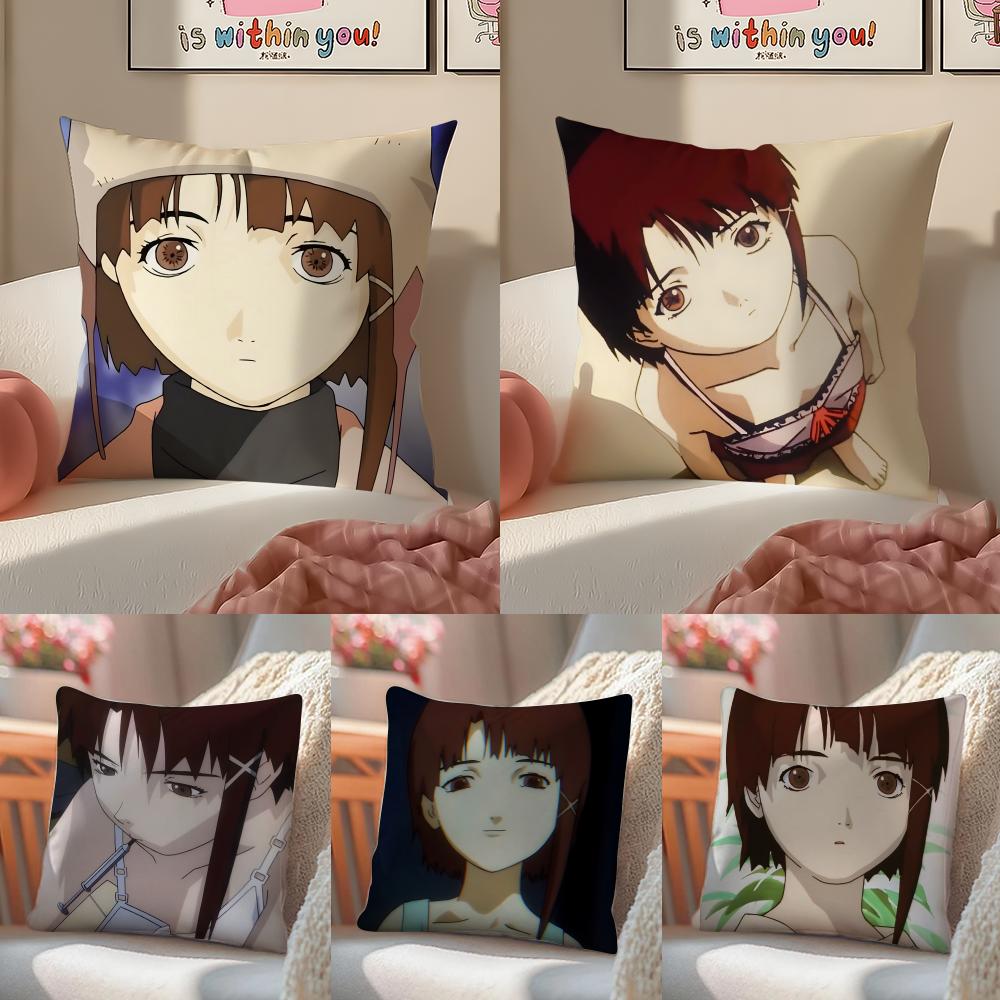 Anime Serial Experiments LLain Anime Movie Cushion Cover Pillowcase Short Plush Invisible zipper Room Sofa Cushion Cover