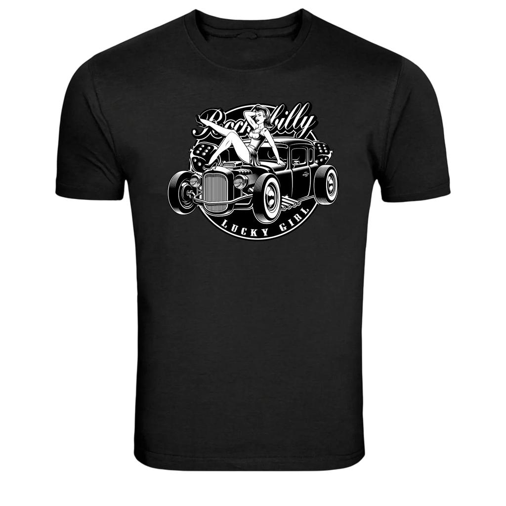 Rockabilly Lucky Girl Pinup Hot Rod Graphic T-Shirt