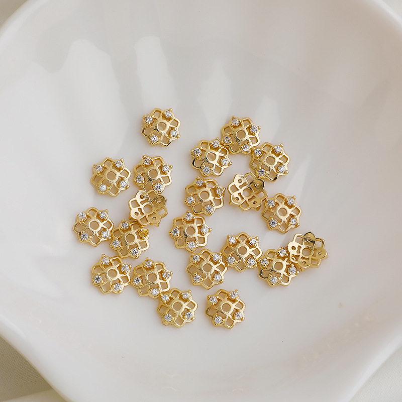 14K Gold Plated Zircon Four-Leaf Clover Flower Cap Bead Holder for DIY Jewelry