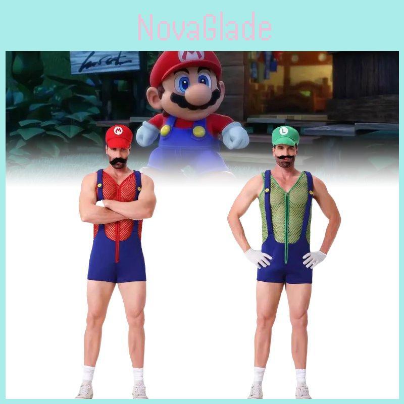 Conjunto de Disfraz de Mario Único Con Sombrero, Guantes, Bigote y Tirantes Para Adultos