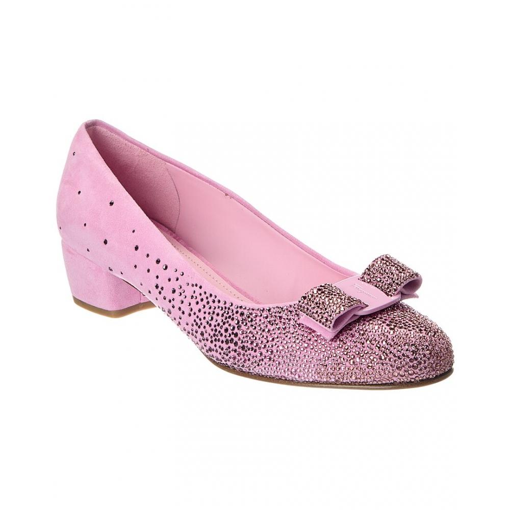Vara Suede Pump In Lilac Suede With Allover Crystals And Suede Vara Bow Accent