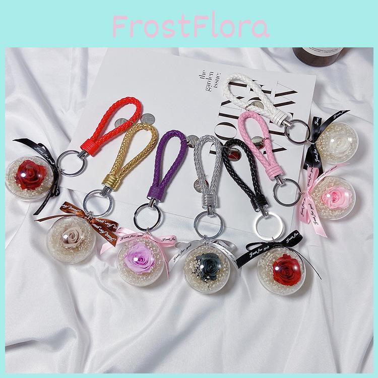 Stylish Women's Floral Keychain With Braided Rope Rose And Dried Flower Pendant