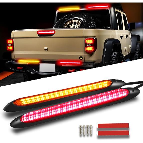 2. Installation location: Side, Roof, Front, Rear, Tail, Bottom. As long as it is a 12V power supply and the size is appropriate,it can be installed (Just measure and confirm the size of the location to be installed first)(Sequential Flow Turn Signal Amber + Start Scanning Red DRL/Brake Light),Easy to install anywhere on the vehicle. Just measure the size!