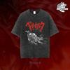 Berserk Brand of Sacrifice & Katana Vintage Washed Double-Sided Anime T-Shirt, Unisex Dark Fantasy Manga Fan Streetwear Tee, 100% Cotton Casual Short