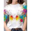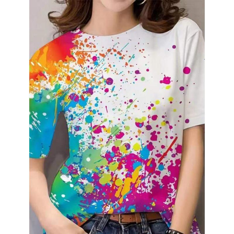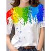New Arrival Street Style Rainbow 3D Digital Print Short Sleeve T-Shirt Women's Fashionable round Neck Top plus Size INS