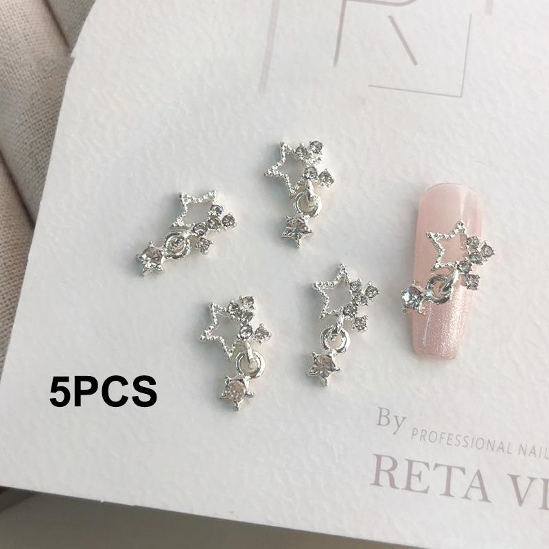 5Pcs Hollow Out Pentagram Pendant Nail Decoration Alloy Star Gold/Silver Wearable Nail Drill Accessory Nail Art Jewelry Material