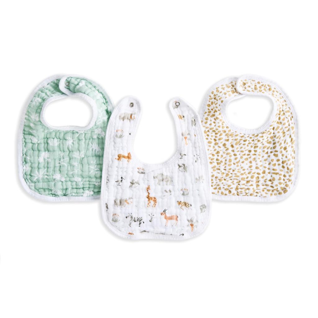 aden anais essentials Snap Bib Giraffe Safari One Size Cotton 23 x 32cm Machine Washable Bib Baby Shower Gift BBADAEESNC30026 + 3-Pack 100%