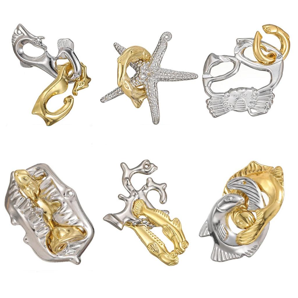[Ocean-themed Puzzle Set] This set includes 6 different ocean-themed puzzle toys. The puzzles feature six themes with varying difficulty levels: crab, starfish, seahorse, coral, shark's mouth, and snapper. Enjoy different difficulty levels to suit your mood. [Train Your Mind and Hands] Puzzles help improve logical and creative thinking. They cultivate concentration, develop patience, and are perfect for stress relief and passing the time. [Carefully Crafted] Made from high-quality zinc alloy with a one-piece construction and gold and silver parts. They are resistant to deformation, pressure, and wear, and offer excellent stability. [Suitable for a Wide Age Range] Suitable for ages 6 and up, from beginners to advanced players. Enjoy playing at home, or easily carry it on the go during commutes, on the train, or while waiting for something to happen. [Product Contents] Set of 6 (crab, starfish, seahorse, coral, shark's mouth, snapper) *Recommended for ages 6 and up