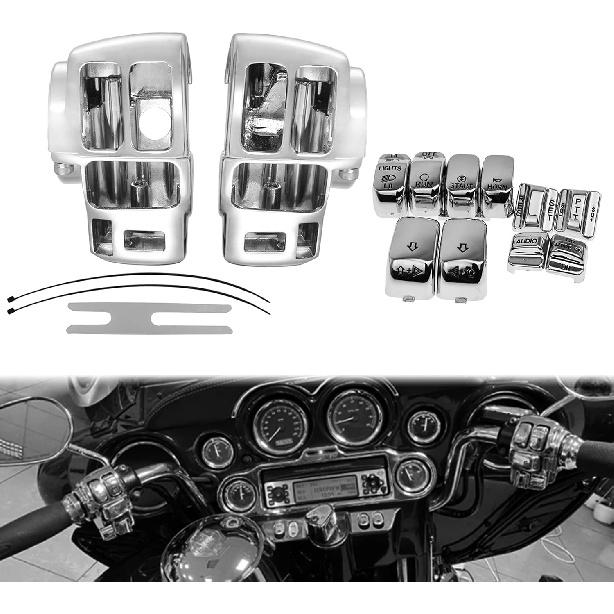 HDBUBALUS Handlebar Switch Housing Cover Case Switch Housing Caps Fit for Harley Touring Road King Tri Electra Glide 1996-2013 Chrome