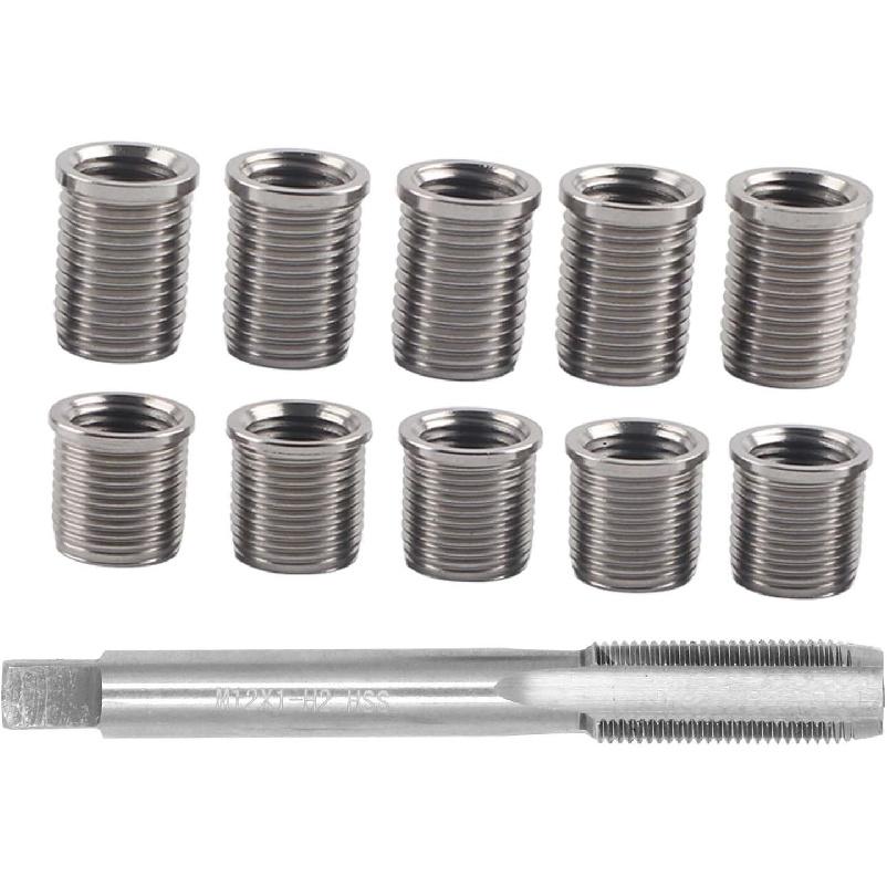 Spark Plug Thread Repair Kit, M10×1.0 Inserts and M12×1.0 Tap Stainless Steel Spark Plug Repair kit for Automotive Engine