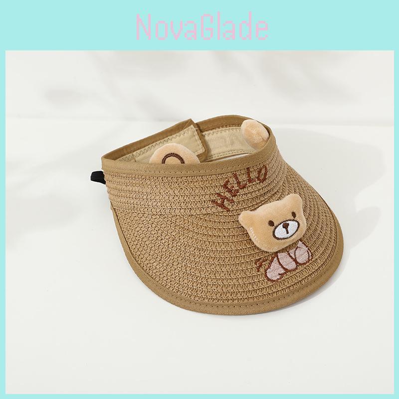 Children's Summer Straw Hat With Wide Brim Cute Bear Ears Breathable Sunshade Cap