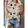 Women's Printed T-shirt with Cat Pattern - Casual Short-Sleeved Top - Large Size - Women's Clothing