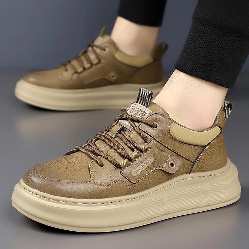 British Style Arrival Casual Leather Mens Board Shoes High Quality Fashion Thick Bottom Shoes Outdoor Non-Slip Walk Hiking Shoes