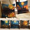 Oil Painting Artwork Angkor WatW Cushion Cover Silky elegant Comfort Sofa Bed Invisible zipper Beach pillowcase