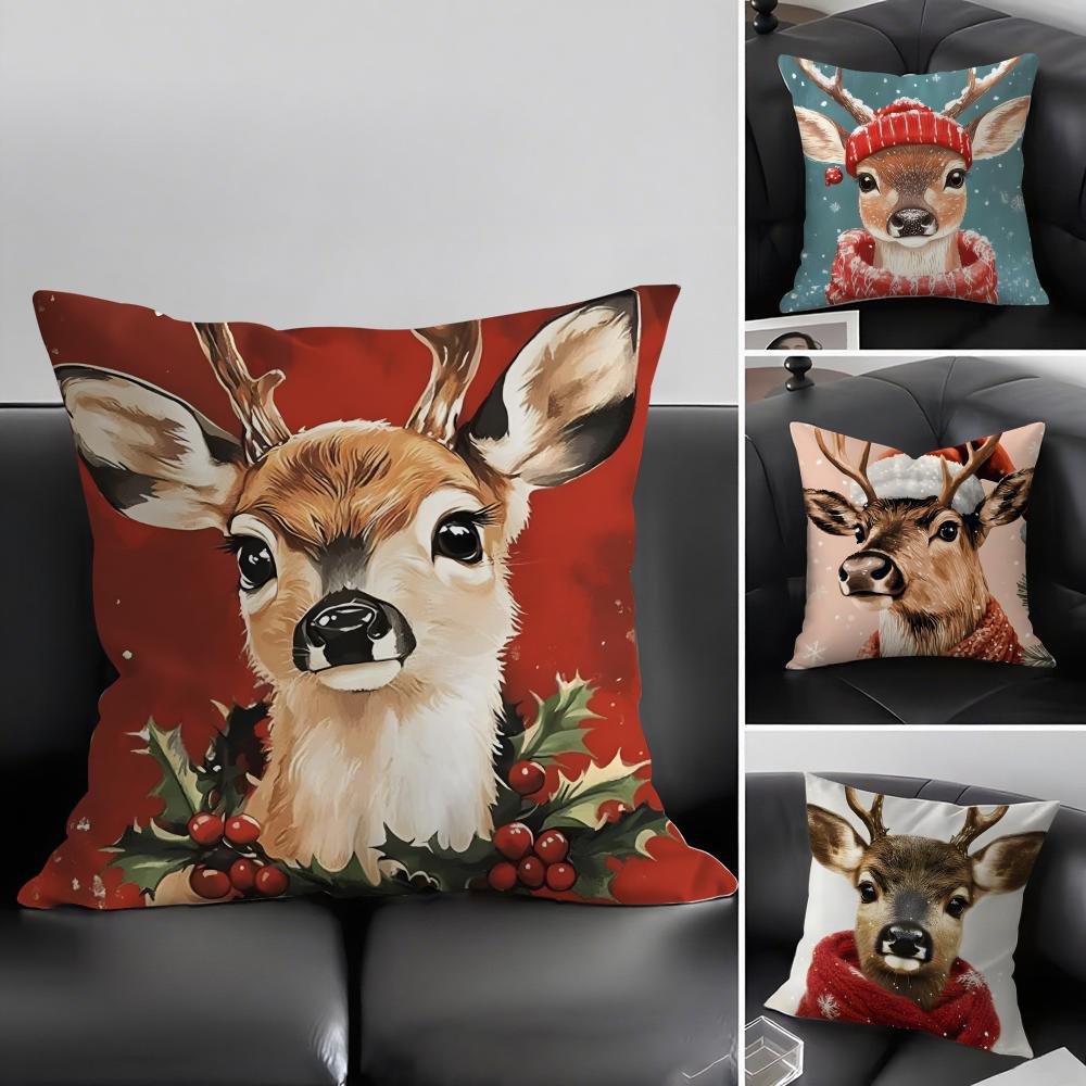 Reindeer Christmas Cute Cushion Cover Pillowcase Ultra Soft Skin Friendly Fabric Cloud Like Comfort Concealed Zipper