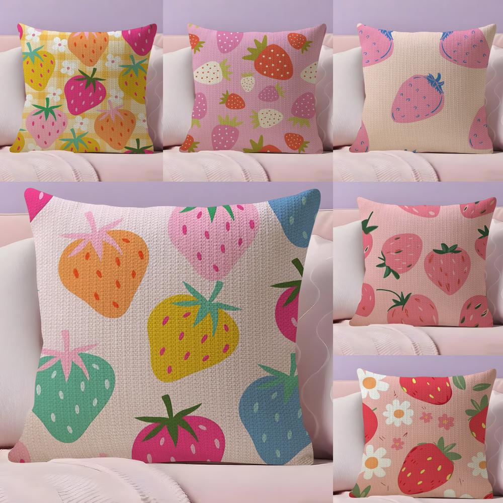 Strawberry Colorful Cushion Cover Natural Linen Pillow Case DoubleSided Print Decorative Sofa Pillowcase Home Decor Gift
