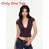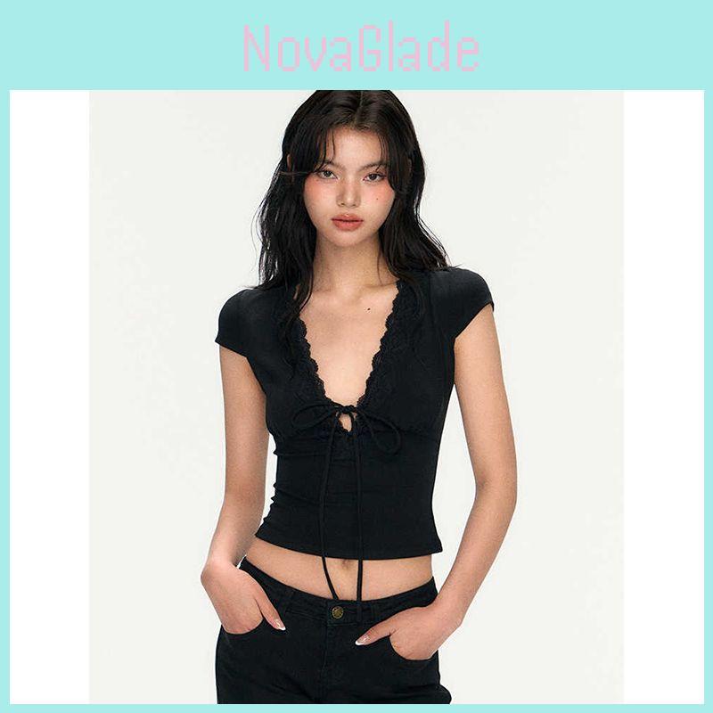 Sexy Black V Neck T Shirt For Women Summer Short Sleeve Slim Fit Casual Top