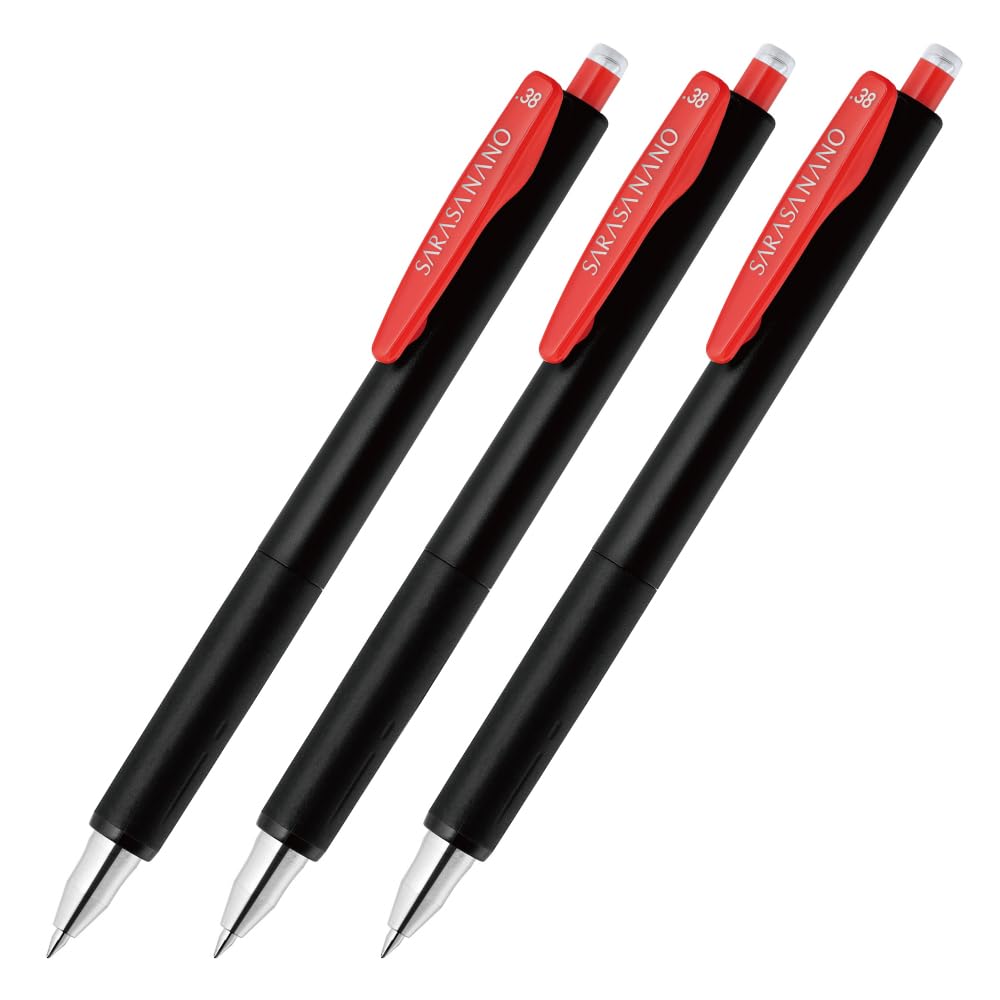 Zebra Sarasa Nano Gel Ballpoint Pen, 0.38mm, Red, 3-pack, P-JJX72-R3-AZ