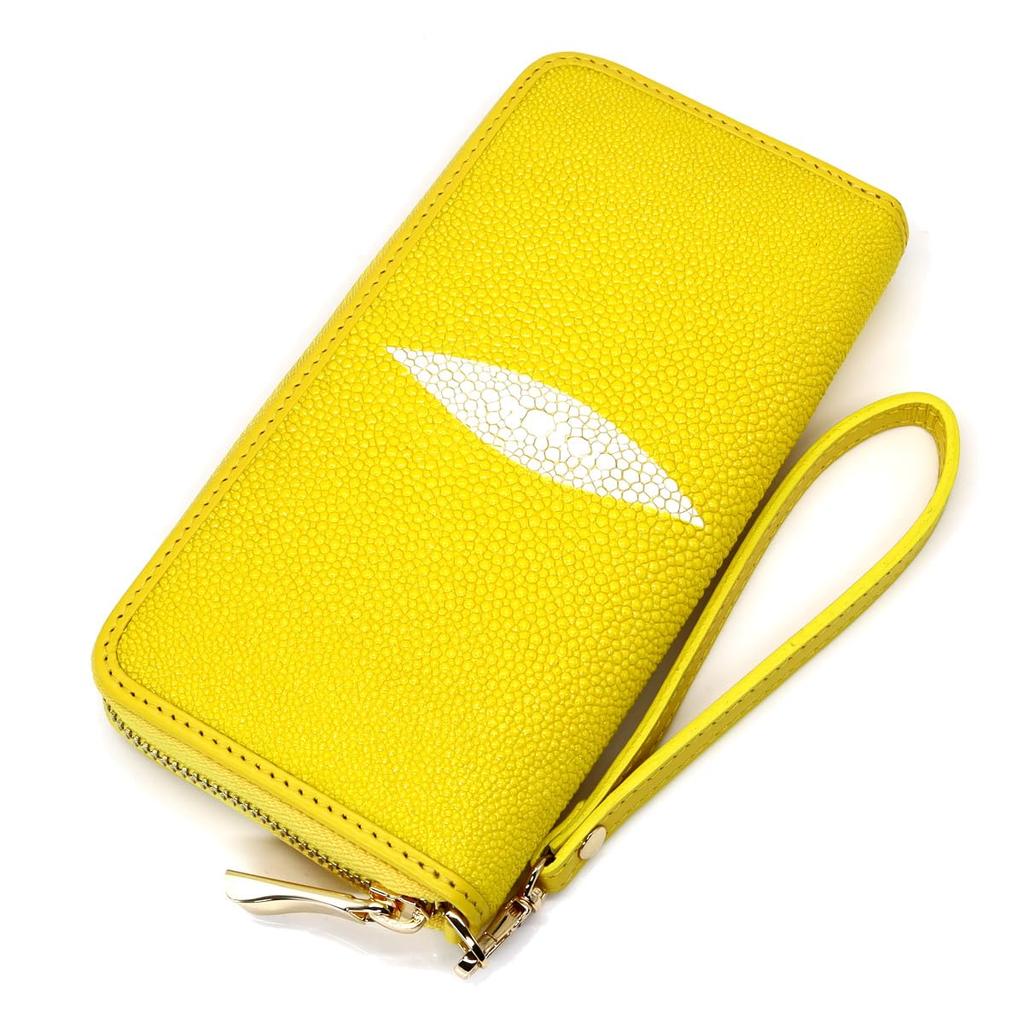 [Revetta] Stingray Leather Long Wallet, Yellow, Caviar Pearl Finish, Round Zipper, Genuine Leather, Women's, with Strap [233stw-2]