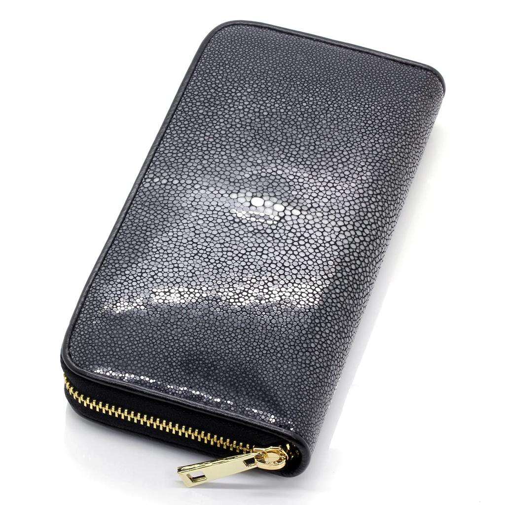 [Revetta] Stingray Leather Long Wallet, Black, Round Zipper, Gold, Galuchat Stingray Leather, Men's Genuine Leather [075-3stw]