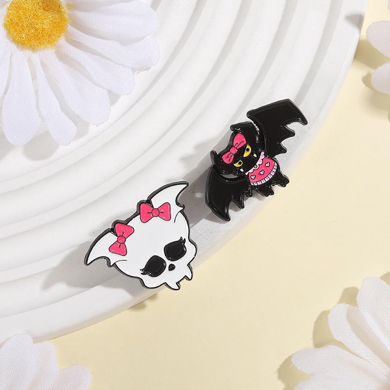 Devil Skull Doll Enamel Pins Custom Punk Bat Brooches Lapel Badges Clothes Gothic Jewelry Gift for Kids Friends