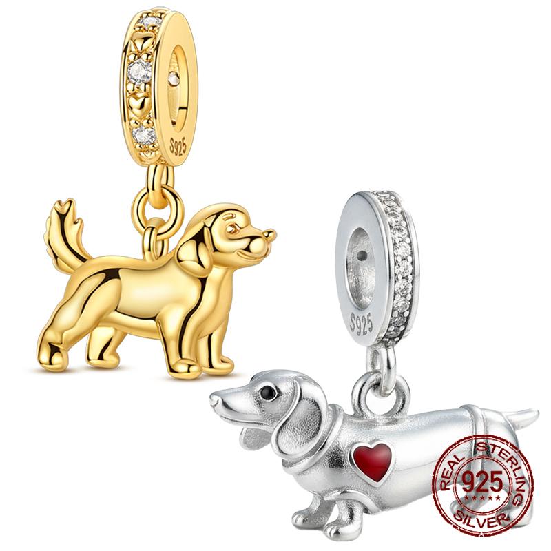 Dachshund Charm Copper Golden Retriever Puppy Dangle Pendants Fits Bangle Bracelets Necklaces DoItYourself Jewellery