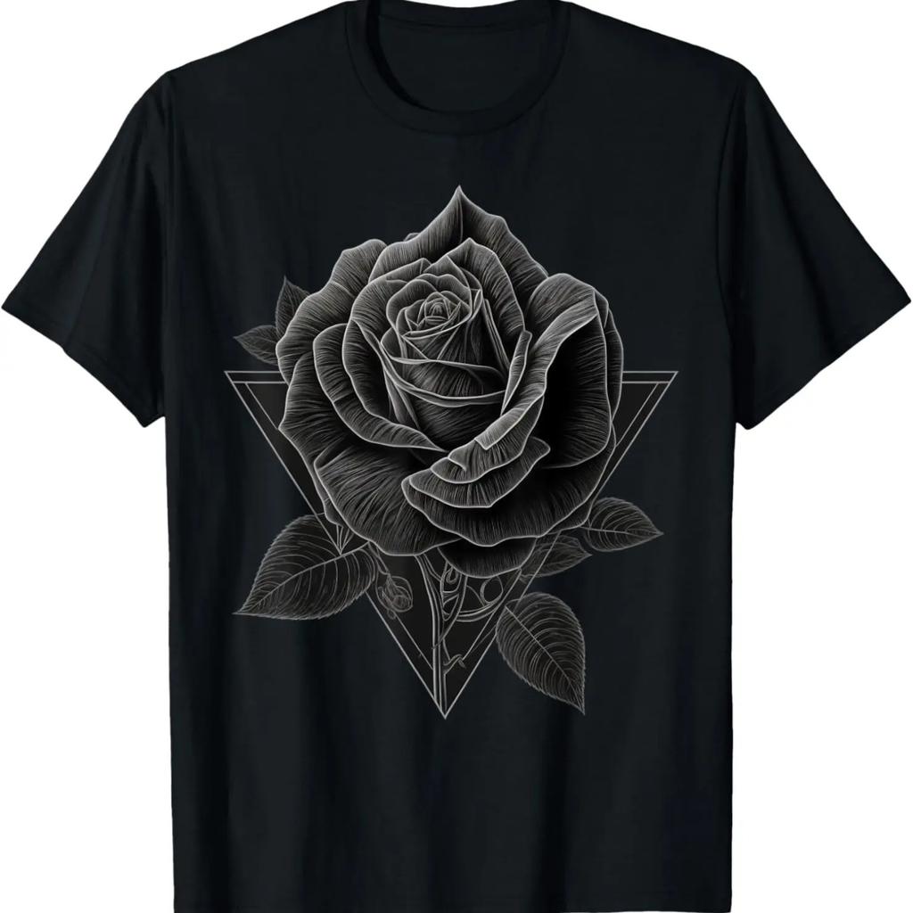 Sacred Geometry black and white Rose T-Shirt