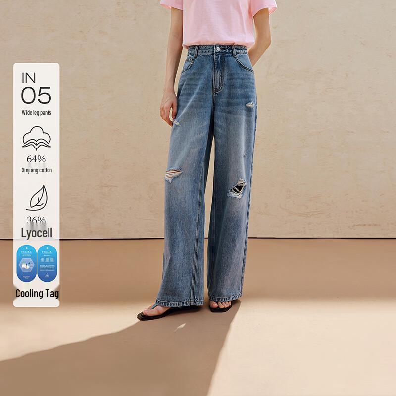 INMAN Women's Lyocell Retro Ripped Wide-Leg Jeans
