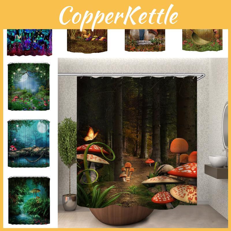 Fantasy Forest Mushroom Swing Waterproof Shower Curtain In Multiple Colors And Sizes