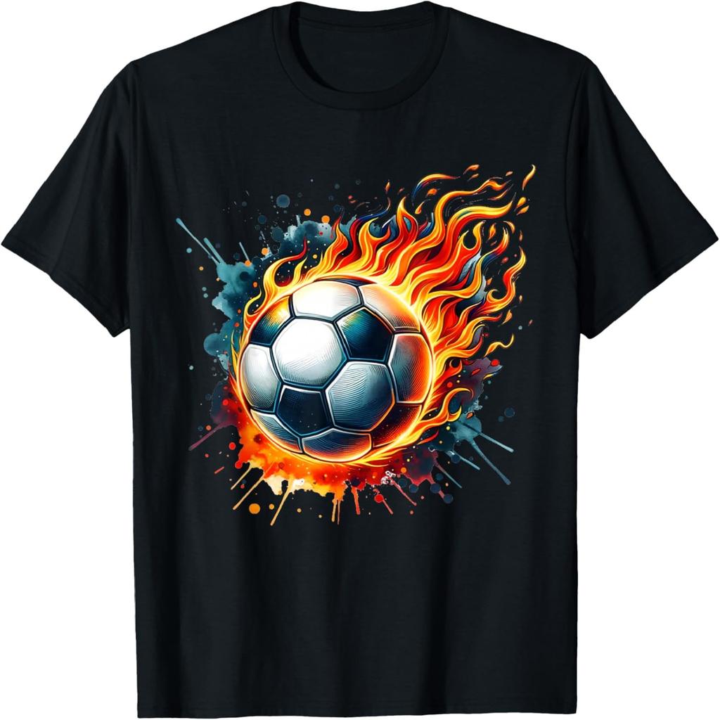 Flaming Soccer Ball on Fire Colorful Splash Sports Lover Fan T-Shirt