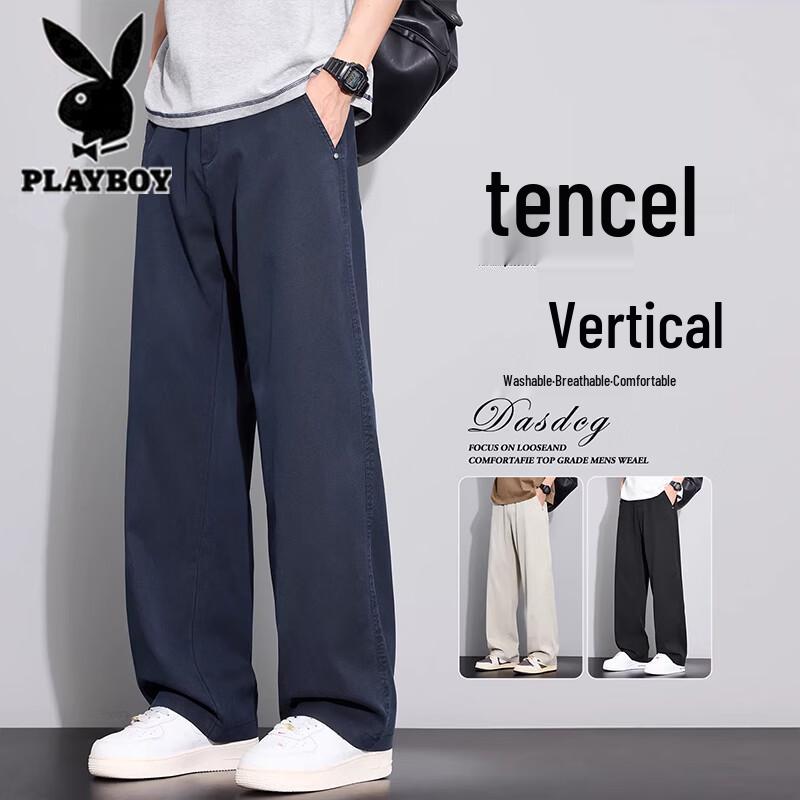 Playboy Men's Summer Tencel Blend Straight-Leg Casual Pants