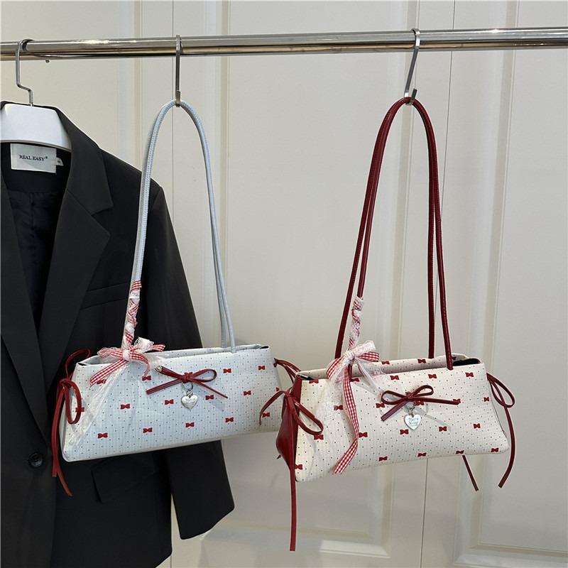 Sweet Bow 2 Underarm Bag Women's New Fashion Polka Dots Cute Simple One Shoulder Portable Tote Bag Tide