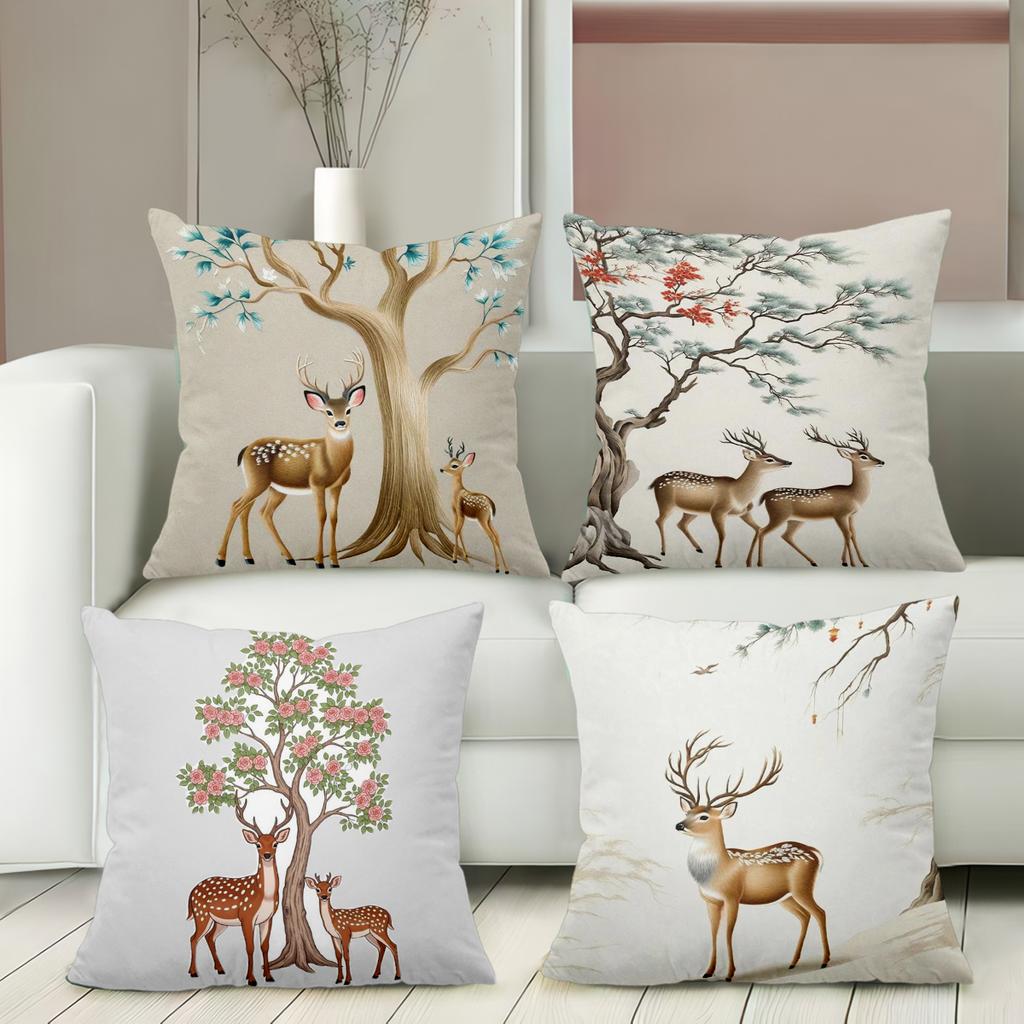 Deer And Tree Pattern Decorative Cushion Covers Polyester pillowcase, sofa decorative cushion cov Headboard Pillow