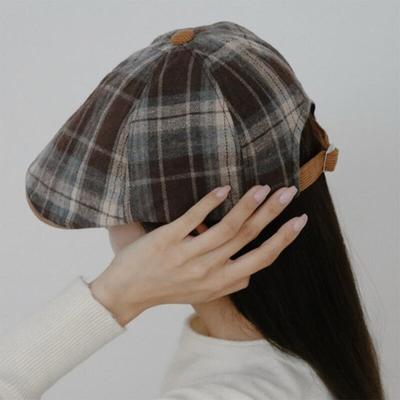 Vintage Plaid Cat Heart Belt Buckle Newsboy Cap For Autumn Winter Fashion