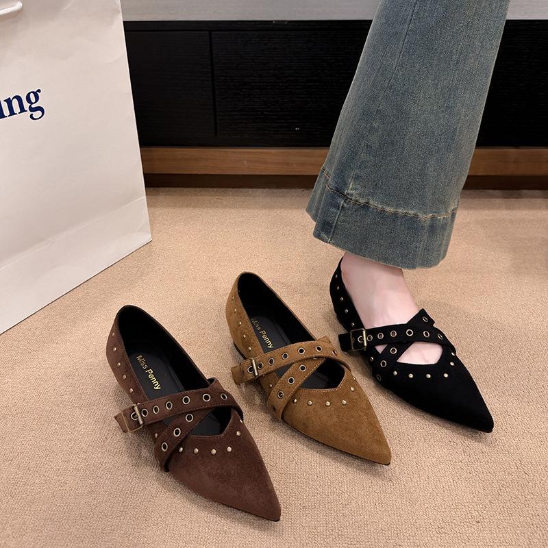 Elegant Women Flat Shoes Fashion Shallow Pointed Toe Mary Jane Shoes 2026 Spring Autumn Ladies Buckle Strap Commute Footwear