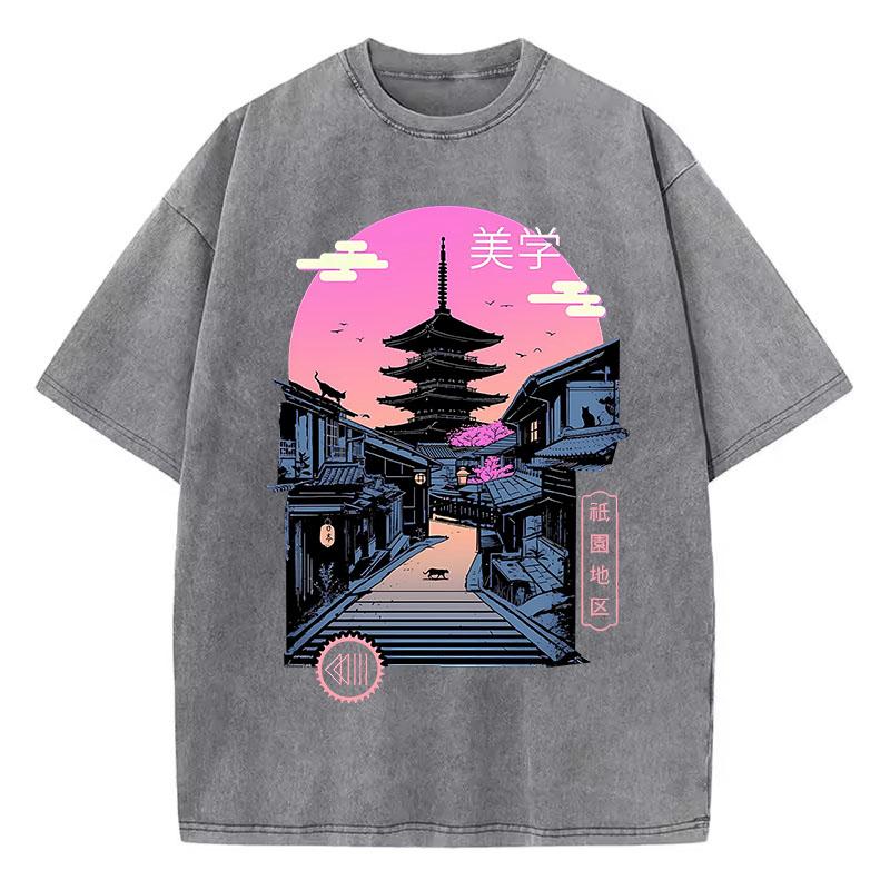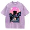 T Shirt Vintage Washed 100% Cotton T-Shirt Japanese Style Gothic Graphic Tee Casual Streetwear for Spring Summer