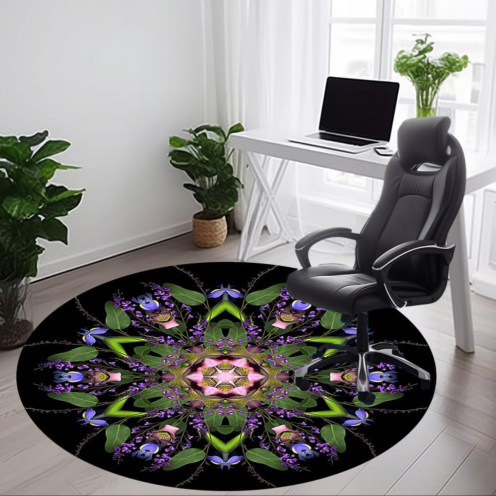 1pc Floral Mandala Chair Carpet for Office, Round Polyester Mat, Indoor Decor for Office, Washable Non-slip Carpet yy251219006