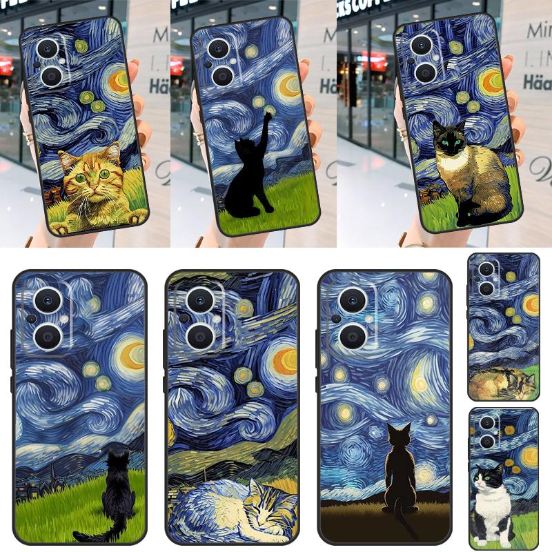 Cat Van Gogh's The Starry Night Case For OPPO Find X6 X5 X3 X2 Pro Lite Neo Reno 7 3 4 5 6 8 Lite 8T 2Z 4Z 5Z Cover Coque