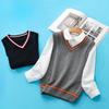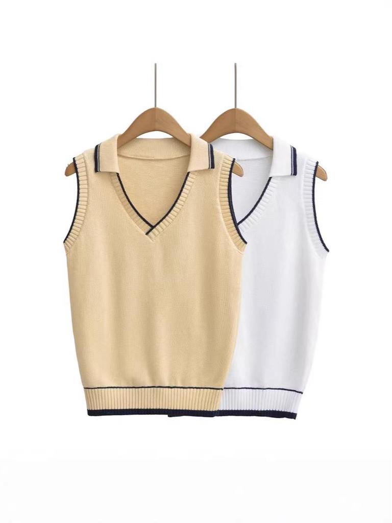 Women's Retro Color-Block Knit Vest: College Style, Polo Collar, Slim Fit, Elegant Camisole Layer