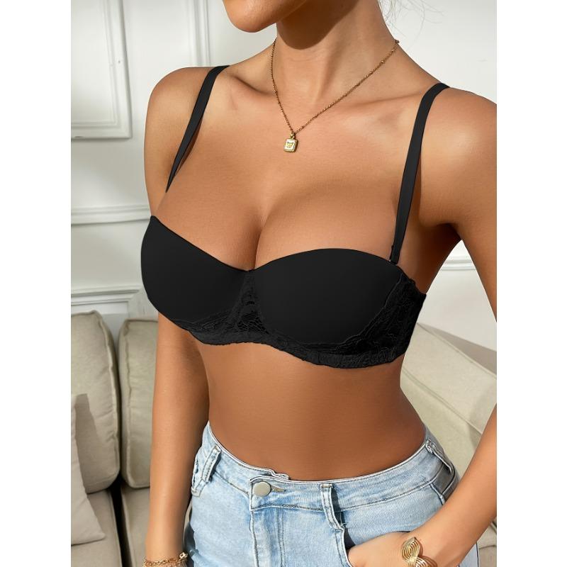 Women's High-Impact Balconette Bra - Solid Color- Women's Lingerie Semi-Covered Contrast Lace Underwire Bra For Lifting