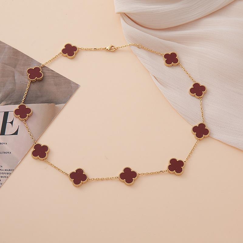 Collar de Trébol de Cuatro Hojas de 15 mm Joyería de Acero de Titanio Cadena para Suéter