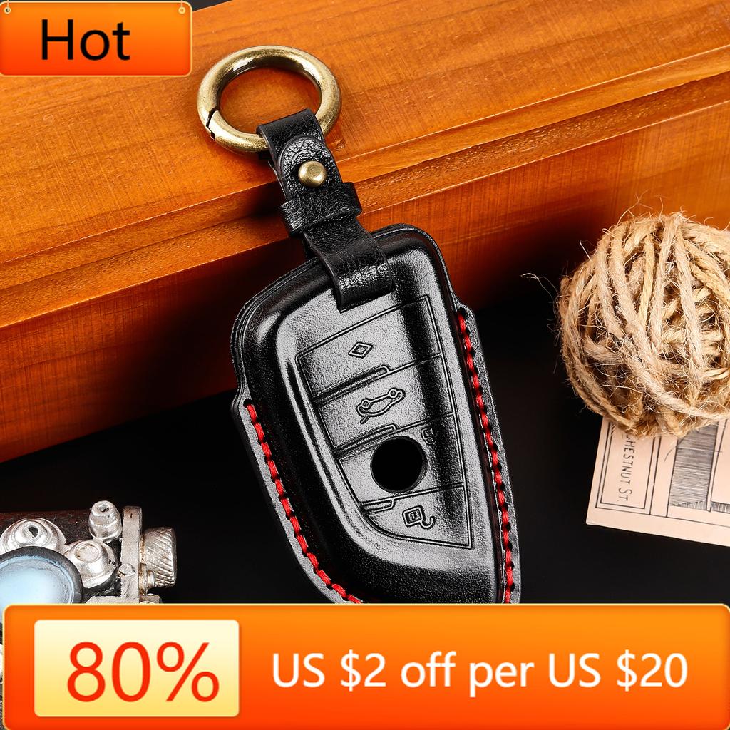 Interior Mouldings 360° New Leather Car Key Case Set Suitable for BMW Blade 3D Stereoscopic Car key Cover Protection Key Set wit