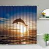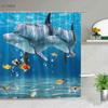 Funny Dolphin Shower Curtains Cute Ocean Animal Blue Seawater Sea Wave Scenery Bathroom Decor Cloth Hanging Curtain With Hooks