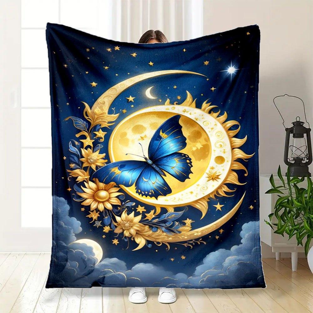 "Enchanted Celestial Butterfly Moon Decor"Blanket Flannel Throw Blanket for Sofa, Bed, Travel, Camping, Office