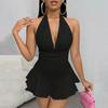 Sexy Deep V-neck Short Dress Summer New Slimming Halterneck Skirt for Women