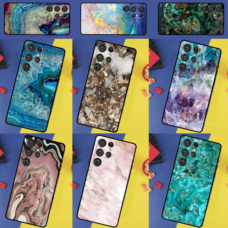 Agate Gem Crystals Marble Pattern Phone Case For Samsung Galaxy S25 Ultra S9 S10 S20 S21 FE S22 S23 Plus S24 Ultra Back Cover